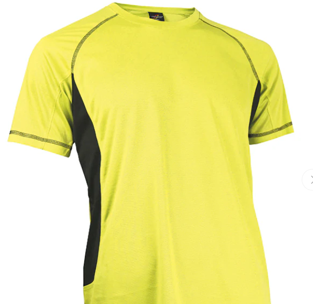 T-shirt adulte polyester jaune fluo-bandes noires - Référence : TSAPOJAUNOIR-M